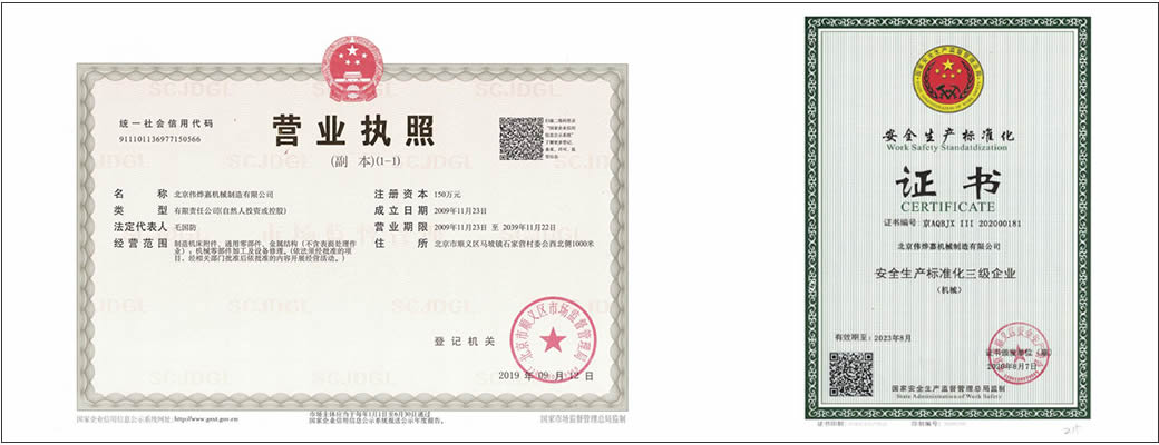 诚实正直、精益求精,是企业的核心,也是服务客户的宗旨。北京伟烨嘉机械制造有限公司全体员工欢迎广大新老客户莅临指导。